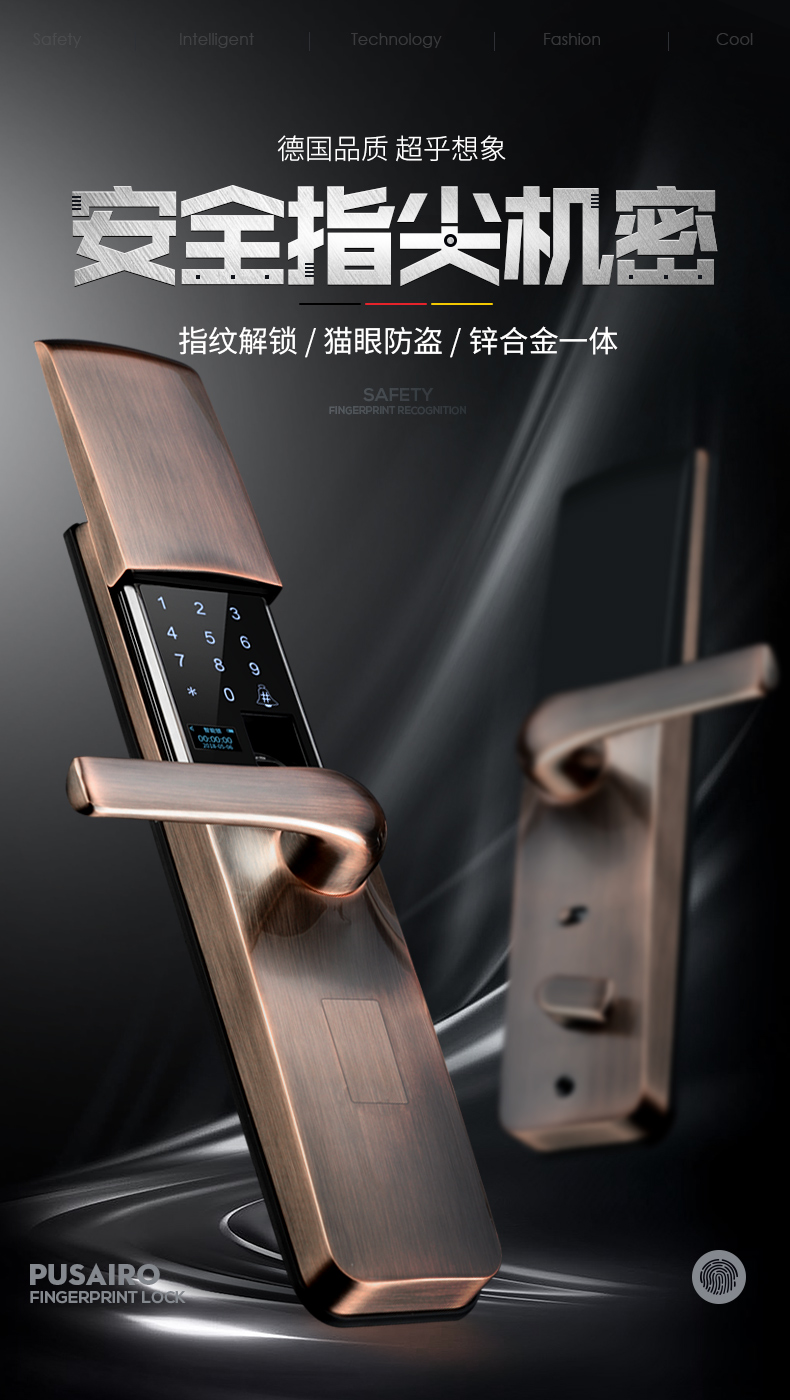 连环乡滑盖指纹锁家用防盗门